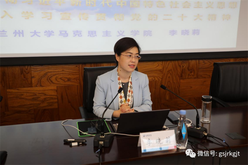 兰州大学马克思主义学院副教授李晓莉同志用世事纷繁多元应、思想之旗领航向、人间正道开新篇、初心砥砺天地间、彩云长在有新天五个生动、形象的标题,详细阐述解读了对党的二十大报告“五个牢牢把握”的重要要求。