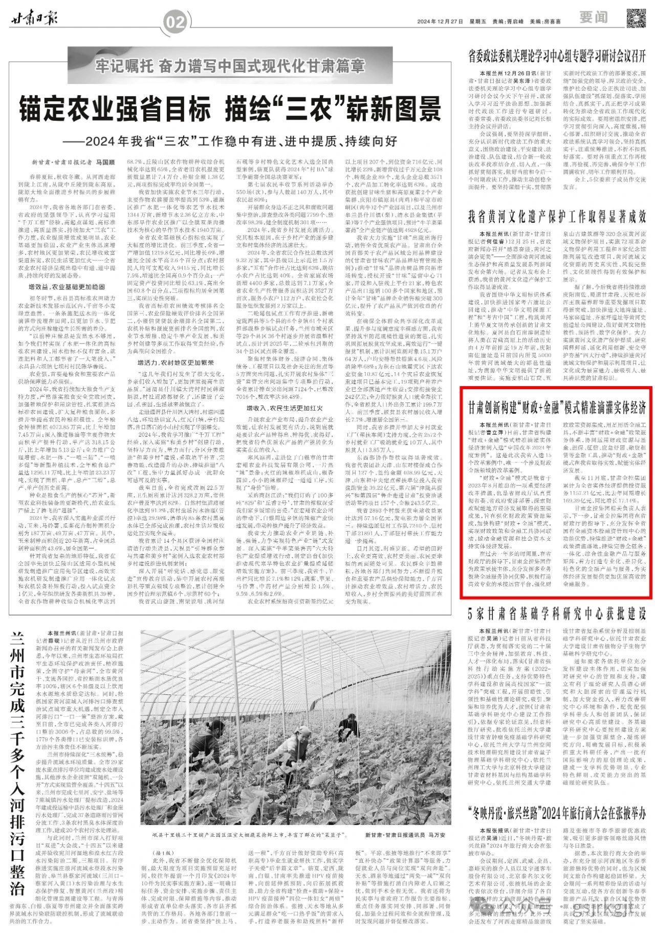 新甘肃客户端兰州讯(新甘肃·甘肃日报记者曹立萍)日前,甘肃省构建“财政+金融”模式精准滴灌实体经济案例入选“中国改革2024年度案例”。这是此次我省入选15个改革案例中,唯一一个涉及财政金融领域的改革案例。