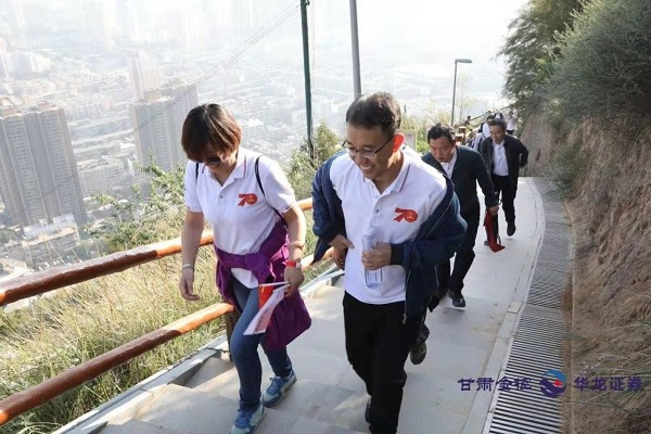 金秋九月,万物丰稔,登高望远,天高气爽。为深入践行不忘初心、牢记使命主题教育成果,隆重庆祝中华人民共和国成立70周年,甘肃金控、华龙证券800多名职工参加“赞绿水青山、与祖国同行”徒步登高健身活动,抒发对伟大祖国的崇敬和热爱之情。
